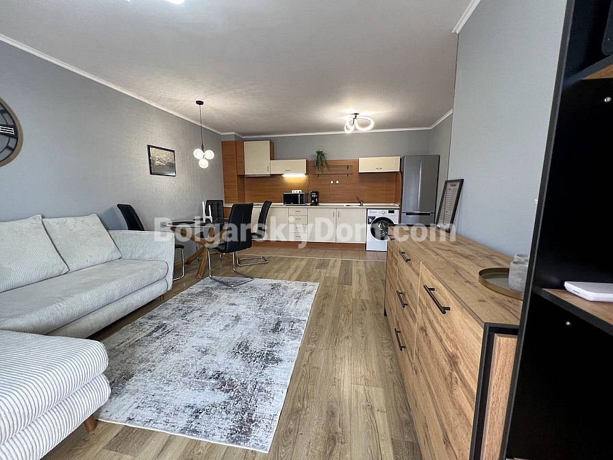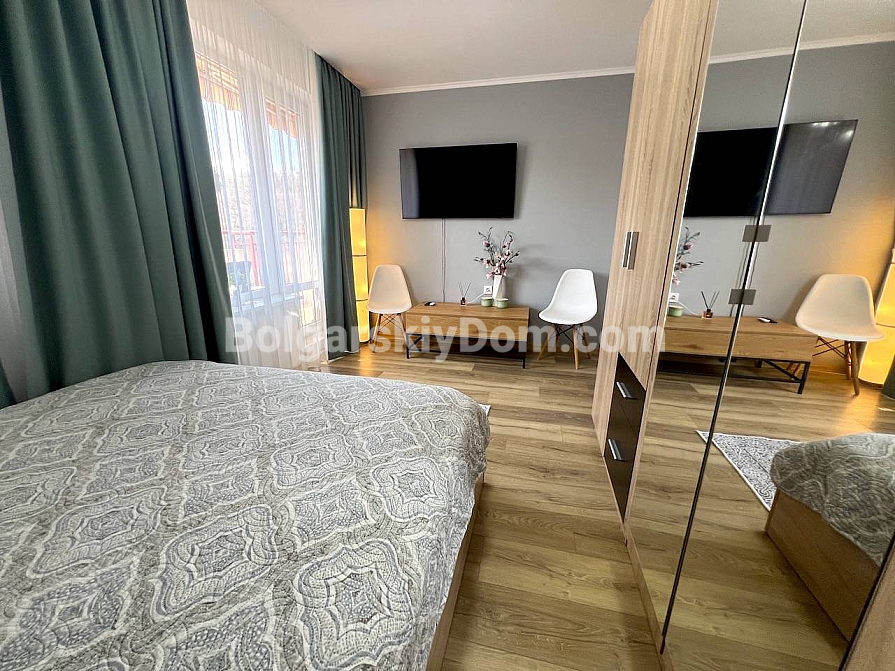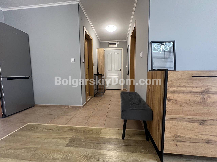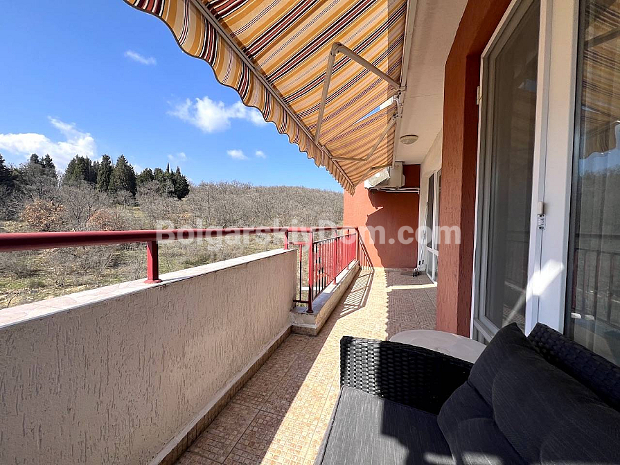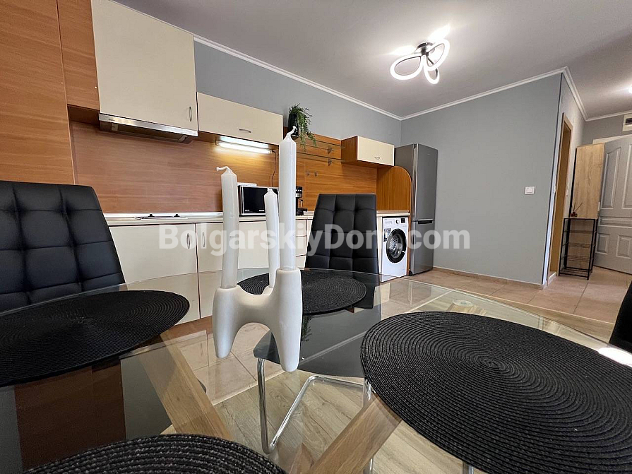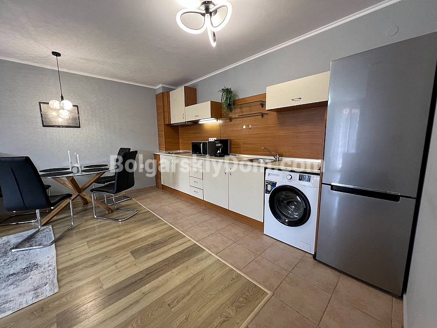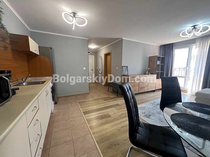 New listing in the Bolgarskiy Dom catalogue! A spacious one-bedroom apartment in the Green Fort complex in Saint Vlas. The total area is 71 sq.m. (living area 66.39 sq.m.), located on the 4th floor (not the top floor) of a brick building built in 2004. The apartment is fully ready for move-in: fresh renovation, new furniture, and all necessary appliances. The layout is удобная: a living room with a kitchen area, a separate bedroom, a bathroom, and a spacious terrace with sea views and views of the new Green Fort Suites complex (expected to be completed by the upcoming summer season). Awnings are already installed on the terrace — you can enjoy the view and fresh air without worrying about strong sunlight.