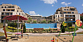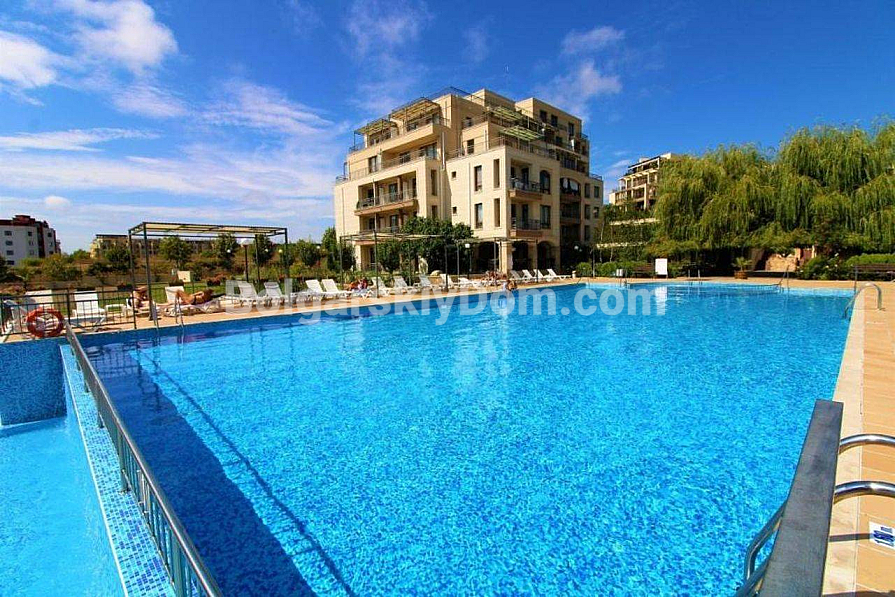 Sorrento Sole Mare is a true Mediterranean oasis within a gated территории: an impressive outdoor pool with multiple zones and waterfalls, children’s pools, landscaped gardens with green relaxation areas, a children’s corner, elevators, and free private parking. On-site and nearby in the Luxor complex, the Luxor Garden restaurant operates, along with shops, a pharmacy, cafés, and a pastry shop — everything within easy reach. The sandy beach of Saint Vlas is just a few minutes’ walk away, with Dinevi Marina and the resort promenade nearby. The maintenance fee is reasonable — 14 EUR/sq.m. per year.