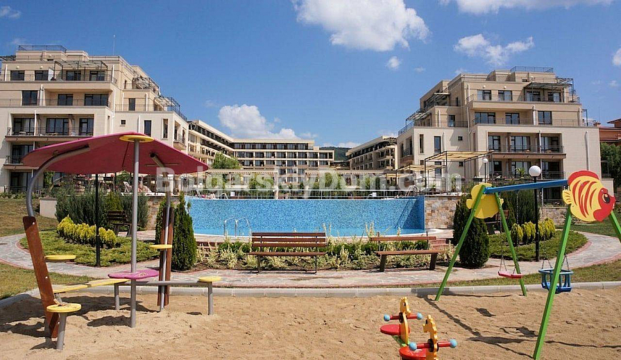 Sorrento Sole Mare is a gated complex offering a high level of comfort: an outdoor swimming pool divided into relaxation and activity zones, children’s pools, landscaped gardens with waterfalls and уютные recreation areas, free private parking, a children’s area, and elevators. On-site and nearby in the Luxor complex, the Luxor Garden restaurant operates, along with shops, a pharmacy, cafés, and a pastry shop — all daily infrastructure within walking distance. The sandy beach is just a few minutes away, as well as the Dinevi Marina and promenade. Maintenance fee: 14 EUR/sq.m. per year. Act 16. Call us to reserve this attractive property!