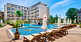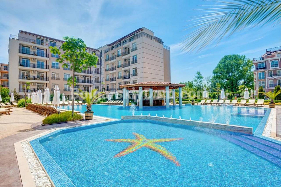 Dawn Park is a year-round complex offering a wide range of amenities: a large outdoor swimming pool for adults with jacuzzi and underwater massage loungers, pool bar, children’s pool, kids’ center with hourly supervision and educational activities, lobby bar, spacious restaurant with an open terrace by the pool, reception, office, and parking. A great bonus — free access to the SPA center of the Izida Palace complex from 16:00 to 18:00 for owners: indoor pool, steam bath, Finnish sauna with Himalayan salt, infrared sauna, shock bucket, and relaxation area with loungers — all included in the maintenance fee. Annual maintenance fee: €1161.12 + renovation fund €85.10 — very reasonable for this level of service. The center of the resort and the beach are about a 10-minute walk away, with a water park nearby — a მშვიდ and convenient location with easy access to all infrastructure. Act 16 received, fully residential — suitable for year-round living and registration without restrictions!