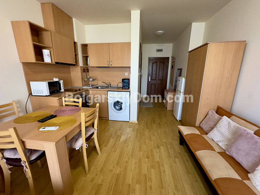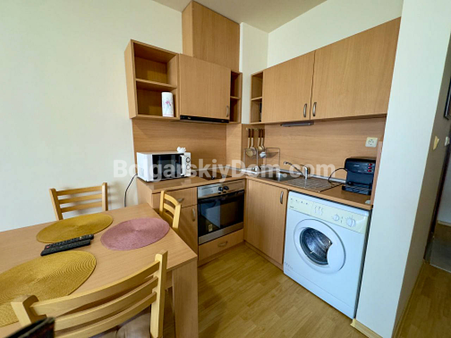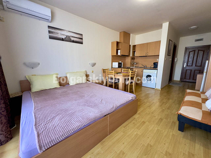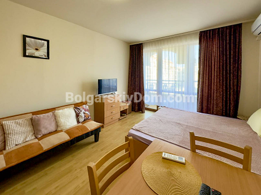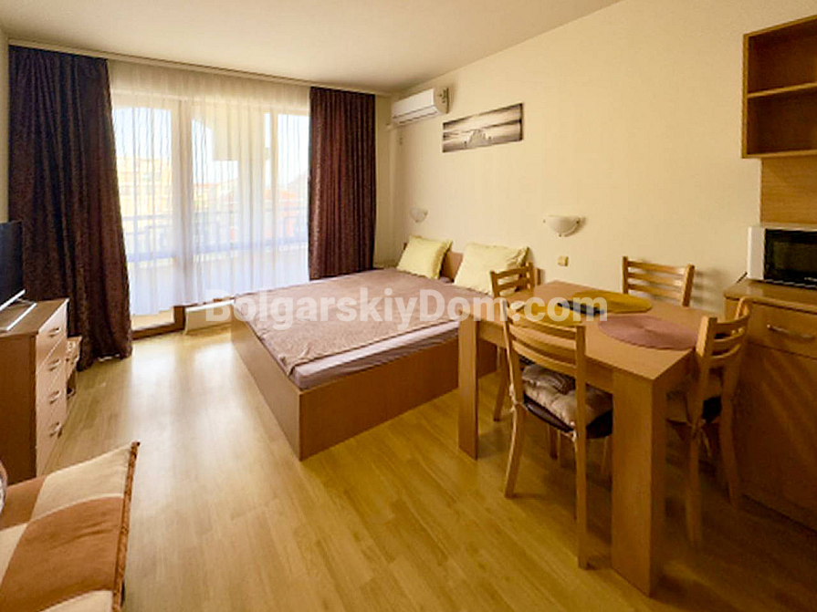 From Bolgarskiy Dom — one of the most liquid and affordable formats on the market! A cozy, fully move-in-ready studio in the Panorama Bay complex, located in a great area of Saint Vlas — between Yurta and Dinevi (one of the most popular spots among tourists!). The apartment is 44 sq.m., on the 4th floor, bright and warm, with a terrace and a partial sea view from the windows. The layout is classic for this type: entrance hall, living area with a kitchenette and sleeping space, and a bathroom with a shower cabin. Fully furnished with furniture in good condition — sofa bed, wardrobes, kitchen units, and appliances. Viewings are already available!