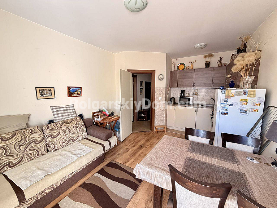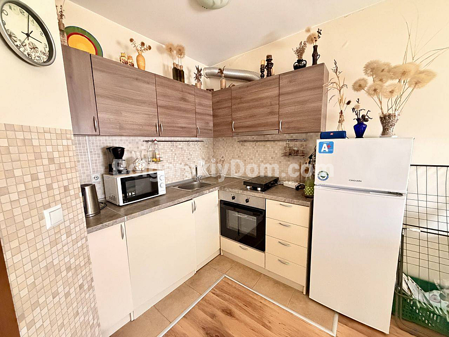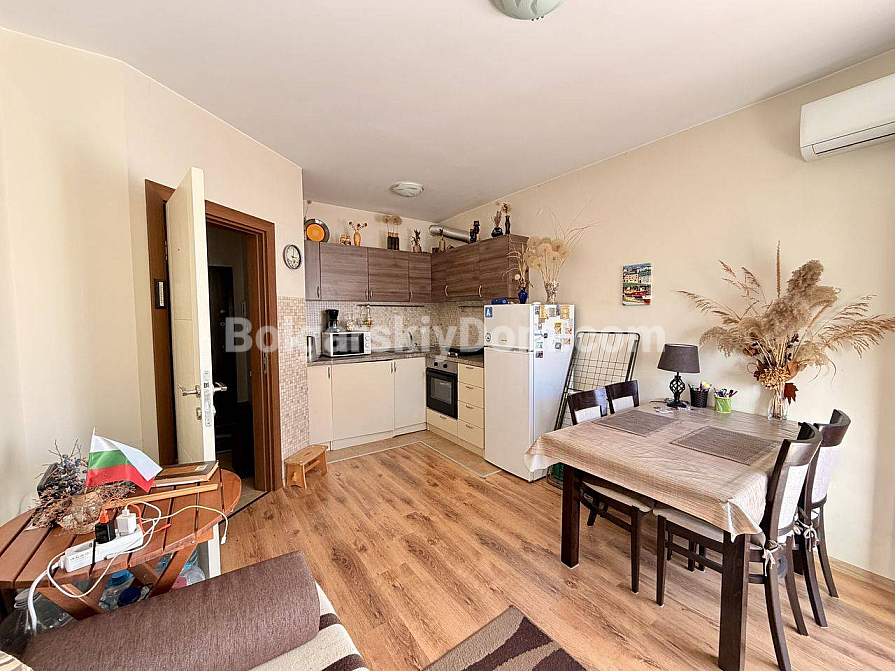 A great option with no hassle over maintenance costs! A one-bedroom apartment in the Viola 2 complex, right in the center of Nessebar. Total area 50.15 sq.m., located on the 3rd floor with an elevator. The apartment is bright, cozy, and in good condition — a living room with a kitchenette, a separate bedroom, a bathroom, and a balcony. Everything shown in the listing is included in the price: furniture, kitchenware, textiles, and appliances — no need to spend extra time, effort, or money, just move in and start using it right away.