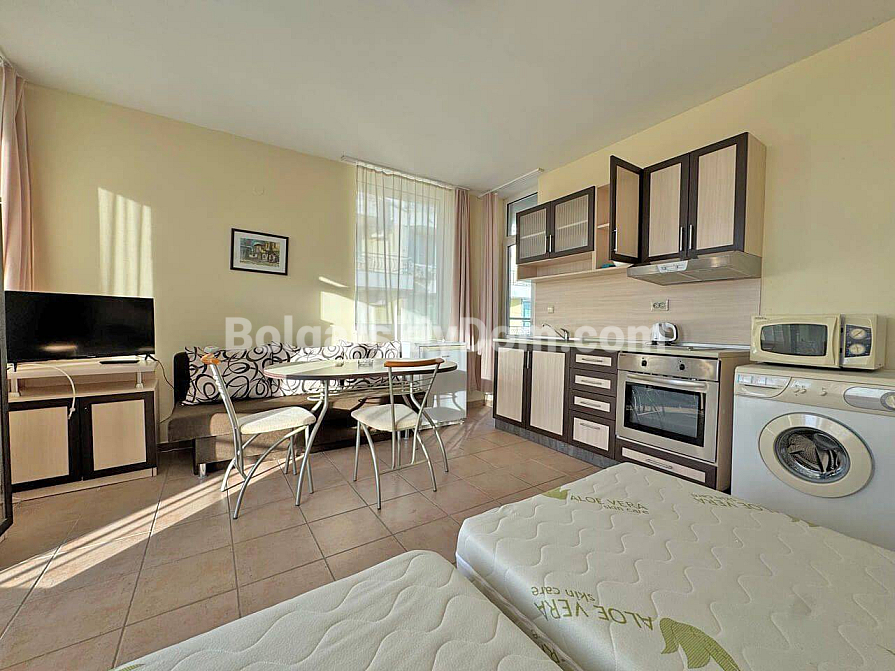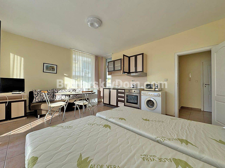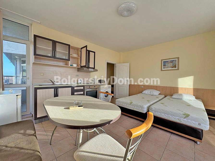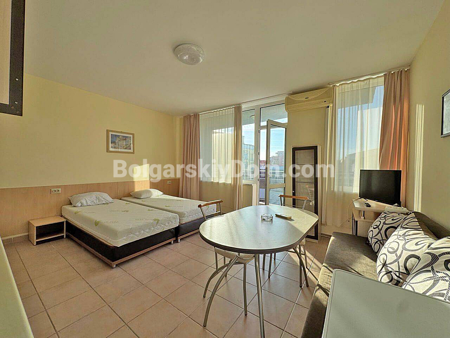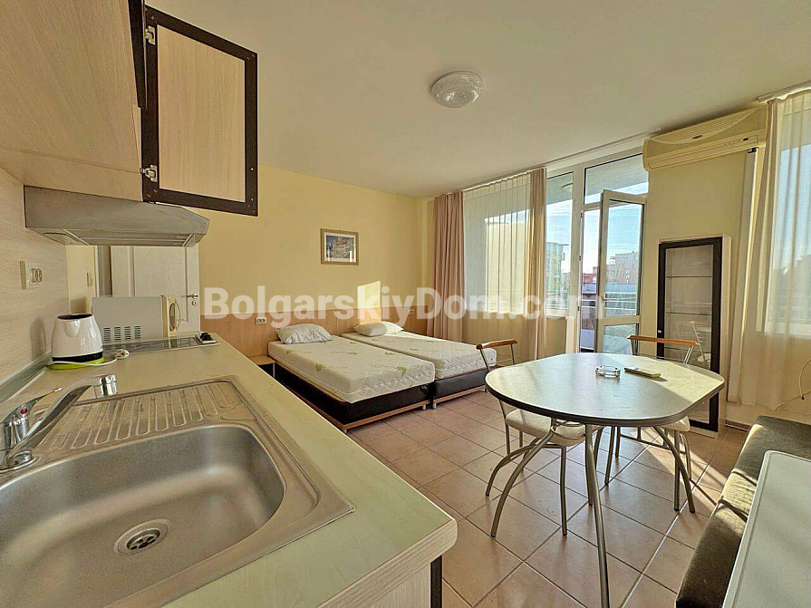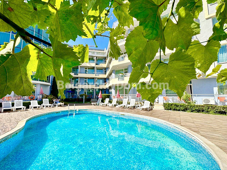 New listing from Bolgarskiy Dom agency! A spacious one-bedroom apartment of 65 sq.m., just 200 meters from the famous Cacao Beach. The property is located on the fourth floor and is fully ready for occupancy. The layout includes a bright living room with a kitchen area, a separate bedroom, and a balcony overlooking a well-maintained territory. The apartment is furnished with essential furniture and modern appliances. Its condition allows you to move in immediately after completing the paperwork, with no additional renovation or furnishing costs.