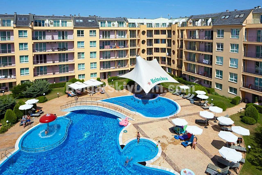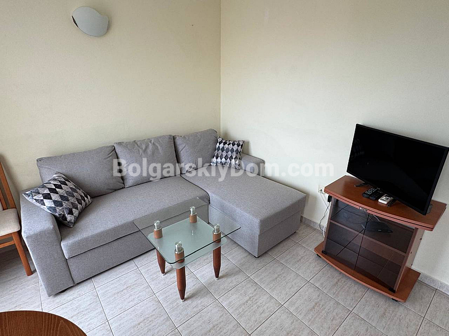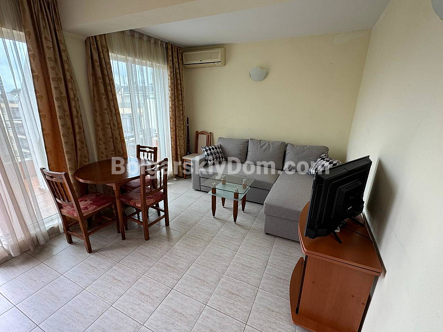 A great move-in-ready option from Bolgarskiy Dom! A one-bedroom apartment in the Polo Resort complex in the southern part of Sunny Beach. The total area is 55 sq.m., located on the 6th (top) floor with an elevator. The apartment is fully furnished and equipped with appliances: a bright living room with a kitchen area, a separate bedroom, a modern bathroom, and a balcony. The layout is classic and familiar. Everything is in excellent condition — you can move in immediately or start renting it out (suitable for both short-term and long-term rentals).