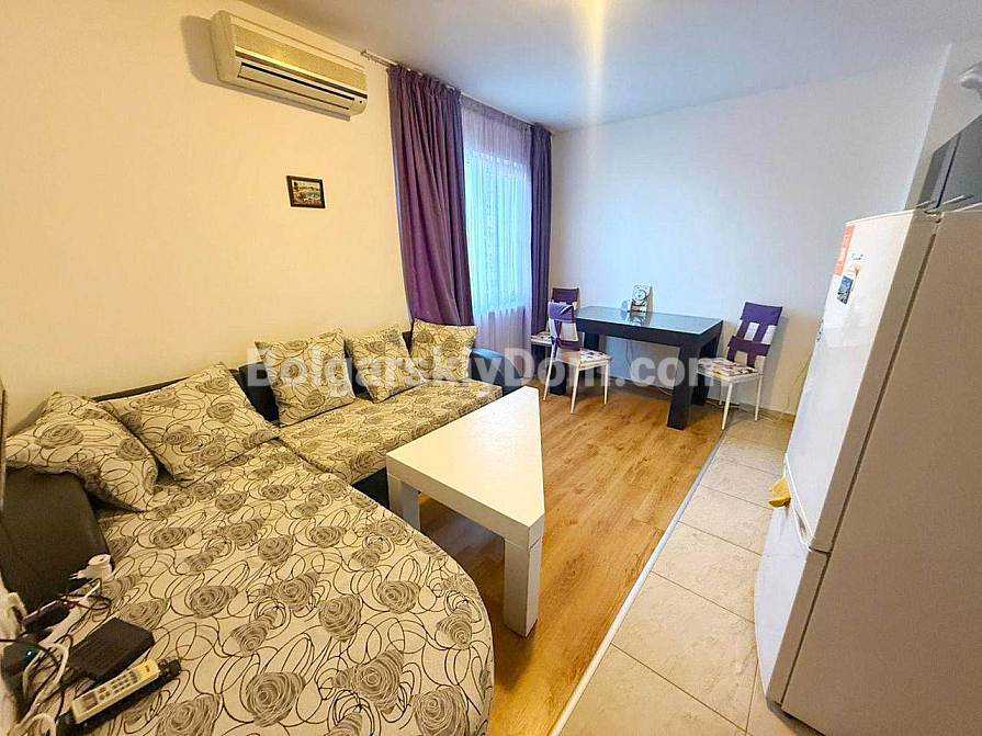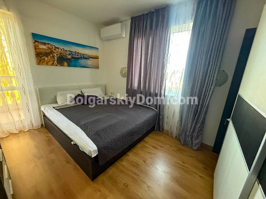 New listing from Bolgarskiy Dom! A one-bedroom apartment with a total area of 56 sq.m. in the Sea Diamond residential complex is fully ready for your move-in. The property is located on the second floor of a building with an elevator and features an excellent interior condition. The layout includes an entrance hall, a bright living room, a bedroom, and a balcony with a pleasant view. All furniture and appliances remain for the new owner, so no additional investment is required.