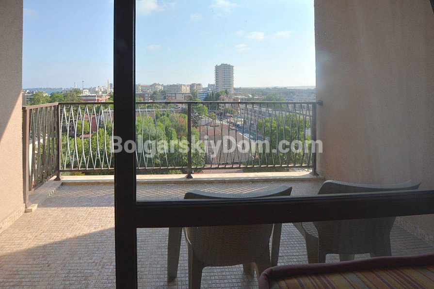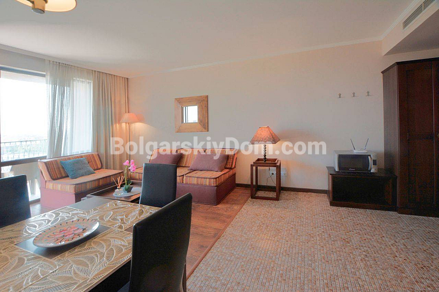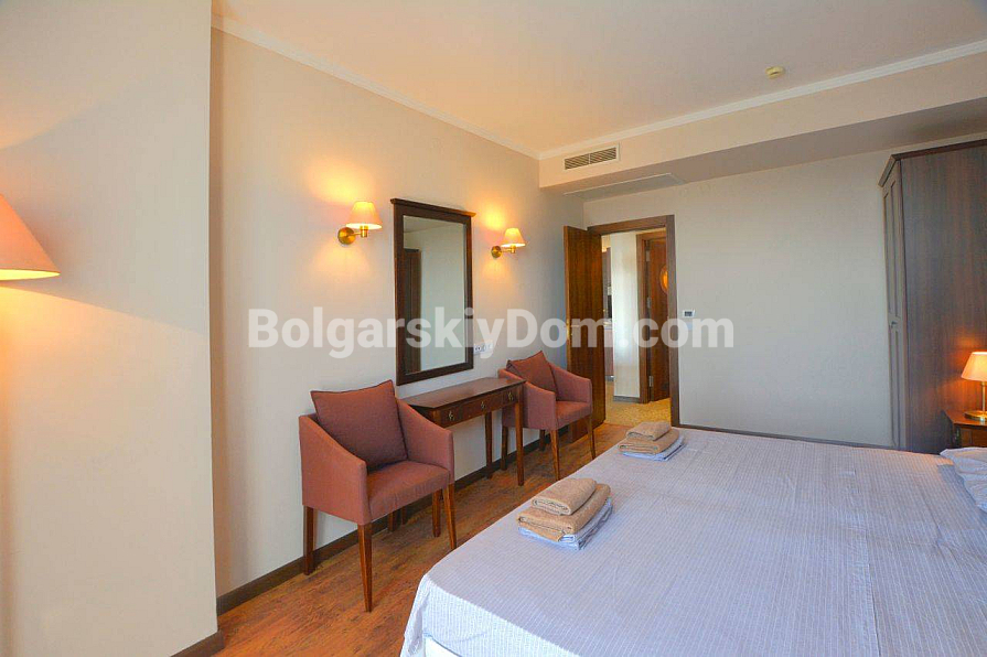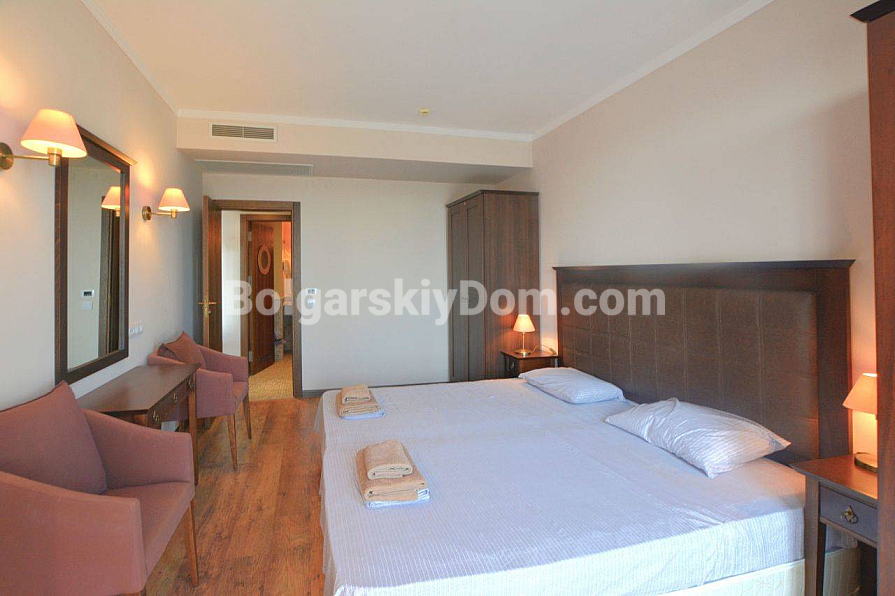 New on the market from Bolgarskiy Dom! A spacious one-bedroom apartment with a total area of 74 sq.m. in the prestigious Barcelo Royal Beach complex, located just 100 meters from the sea. The property is situated on the 5th floor and offers a pleasant side sea view. Inside, a classic interior has been implemented, with high-quality furniture and household appliances installed. A spacious shaded balcony provides a comfortable place to relax during the hottest hours of the day.