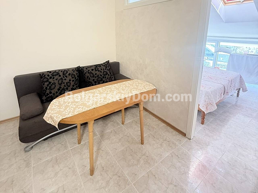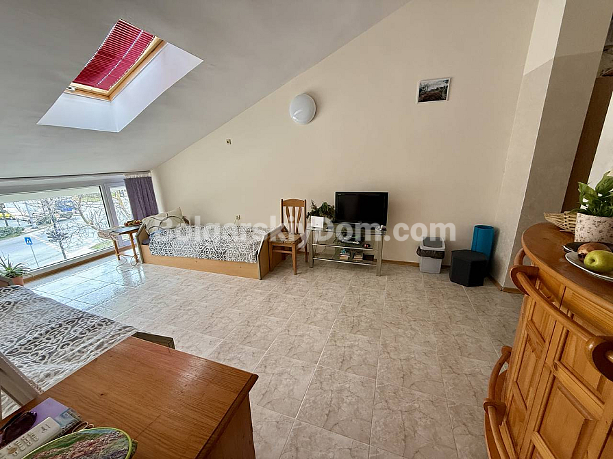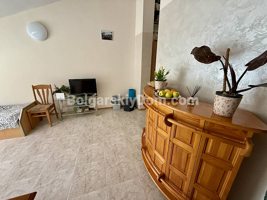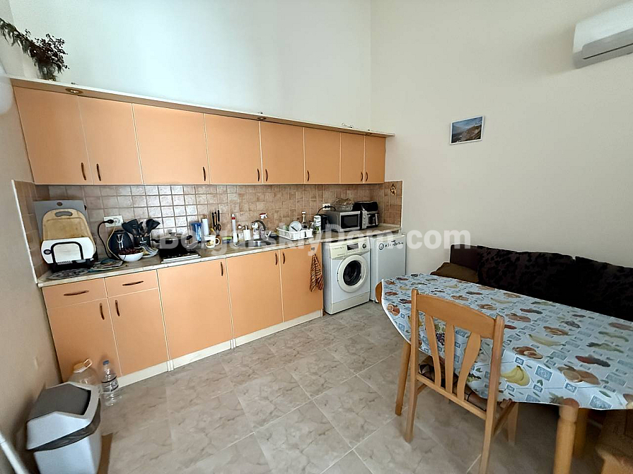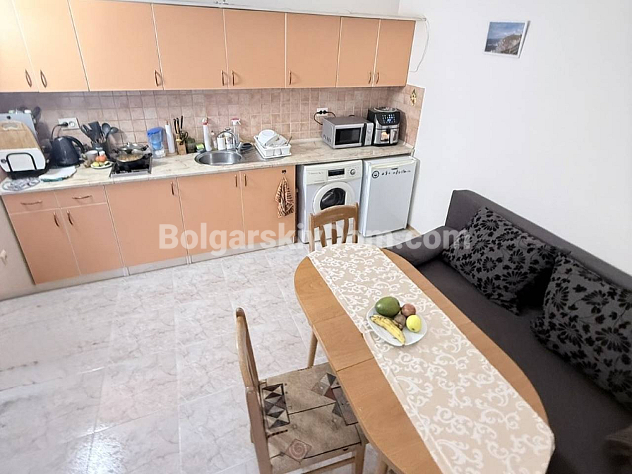 A new addition to the catalog from Bolgarskiy Dom! A spacious one-bedroom apartment with a total area of 63 sq.m. in the Elite 1 complex, located just 200 meters from the coastline. The property is situated on the top floor of a three-storey brick building, ensuring no neighbors above and a quieter living environment compared to lower levels. The layout offers an important advantage: the kitchen area is fully separated from the living room, making it a полноценное apartment for long-term living (a classic one-bedroom layout). Furniture and appliances are in good condition, the rooms are fully equipped, and everything is included in the price.