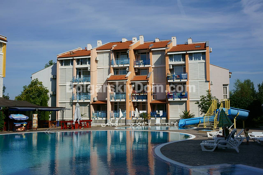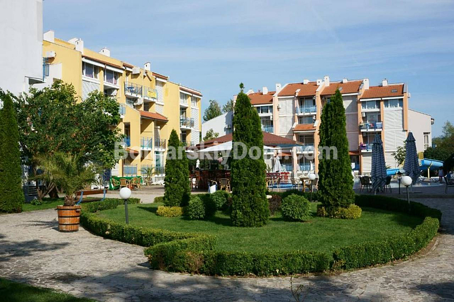 The gated территории of Elite 1 features a large swimming pool with a water slide, a restaurant, and a barbecue area surrounded by greenery. The area is suitable for year-round living: major supermarket chains Lidl and Carrefour are just a couple of minutes away on foot. The brick construction helps maintain a comfortable indoor temperature in any season. The annual maintenance fee is 10 euros per sq.m. The absence of an elevator in this low-rise building ensures quiet common areas and structural reliability. We will arrange a viewing and provide all up-to-date documents for the transaction.