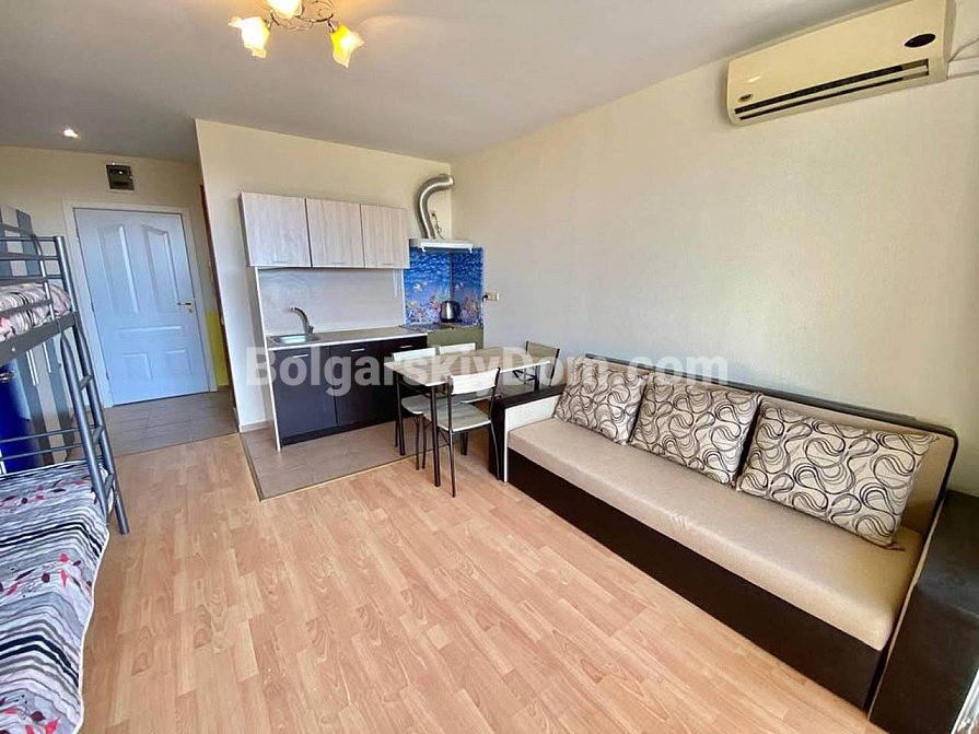 A new addition to the catalog of high-liquidity properties from Bolgarskiy Dom! This cozy 40 sq.m studio in Nessebar Fort Club immediately attracts attention with its full readiness for move-in. The apartment is located on the 2nd floor and features a well-thought-out layout: a separate kitchen area, a bright living space, and a spacious balcony. The interior is fully equipped with quality furniture and all necessary appliances, so new owners won’t need to spend time or money on furnishing.