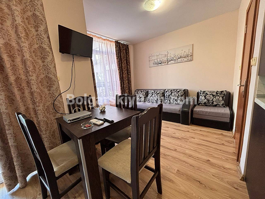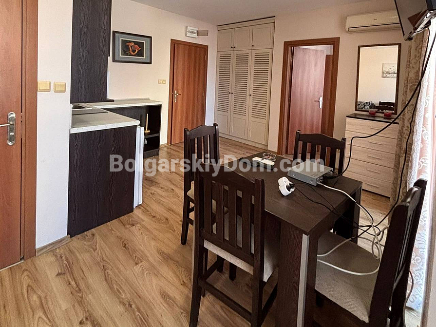 A new listing in the Bolgarskiy Dom portfolio in a quiet part of Sunny Beach! The key advantage of this property is the presence of 2 bathrooms and the possibility to create a second bedroom in an apartment of 54.08 sq.m. The apartment is located on the 2nd floor of the Dawn Park complex and is fully equipped with furniture and high-quality appliances. From the balcony, there is a pleasant view of the internal territory with a swimming pool. The property is ideal for year-round living, as the building operates throughout the year.