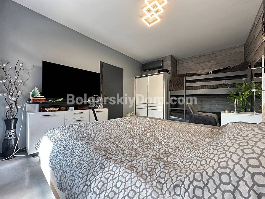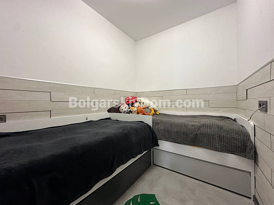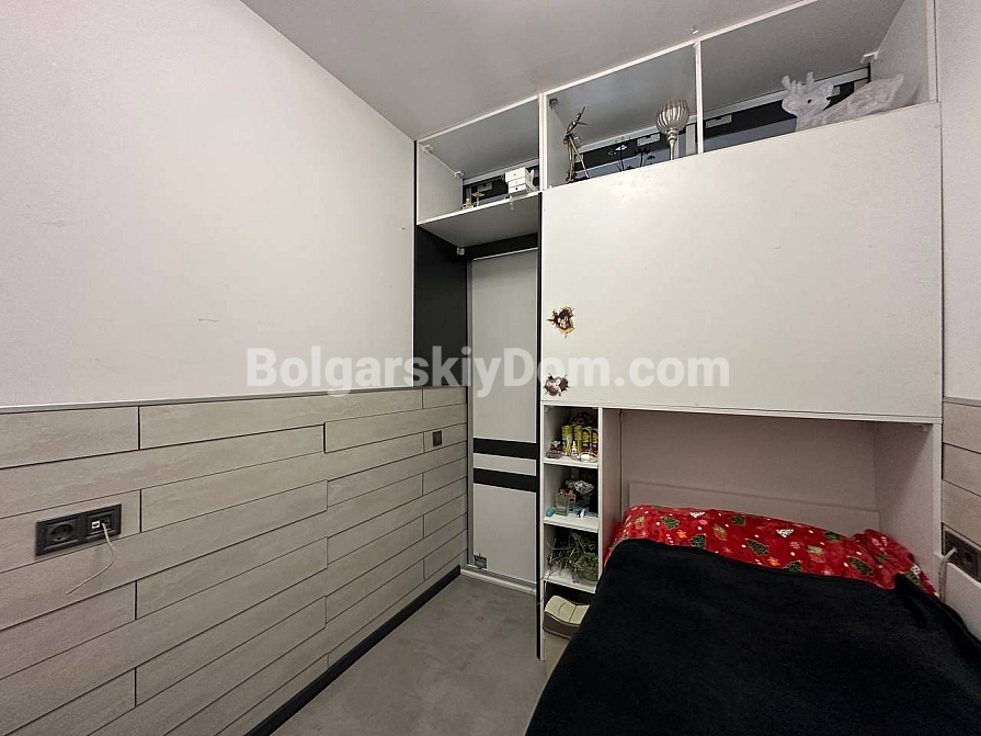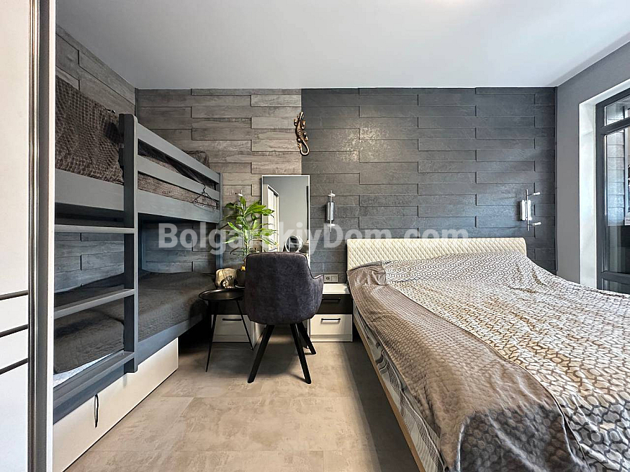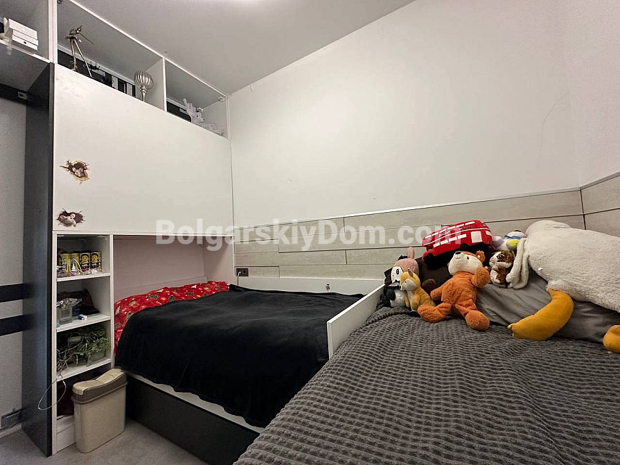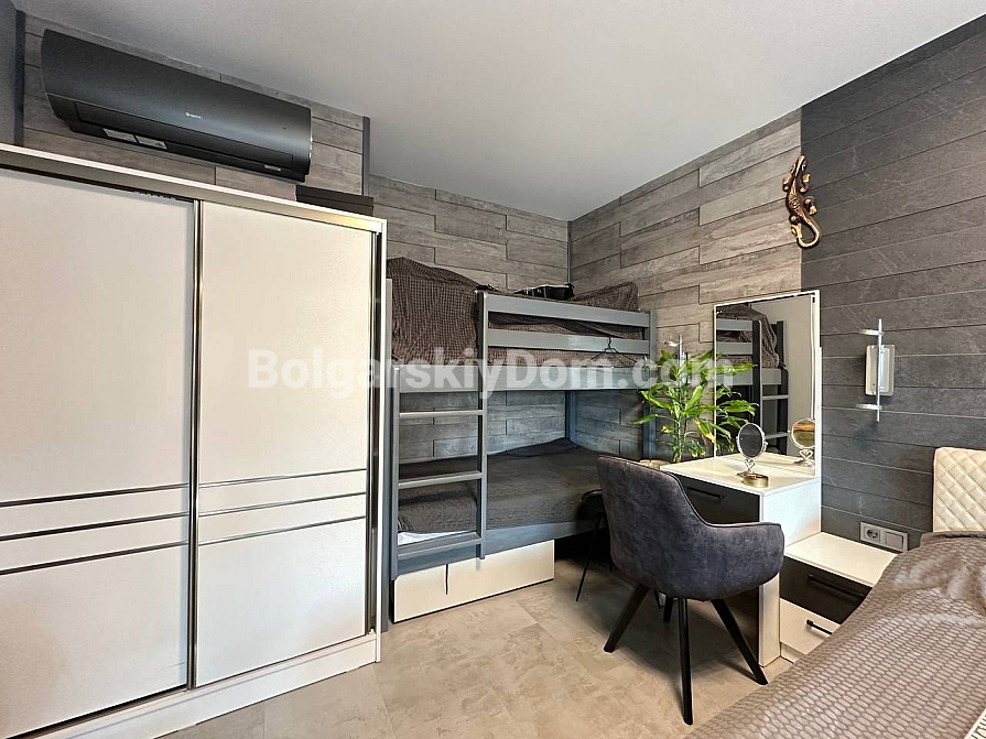 A new addition to the Bolgarskiy Dom portfolio in one of the most desirable locations of Saint Vlas! The key advantage of this 100 sq.m. property is hidden inside: a standard layout has been thoughtfully redesigned into a full-fledged two-bedroom apartment. The owners have created an additional children’s room and converted the insulated terrace into a living space. A major renovation was completed last summer, with all furniture and appliances replaced by brand-new models. The walls have been upgraded with high-quality sound insulation and reliable thermal protection. The apartment is located on the 2nd floor of a five-storey building.