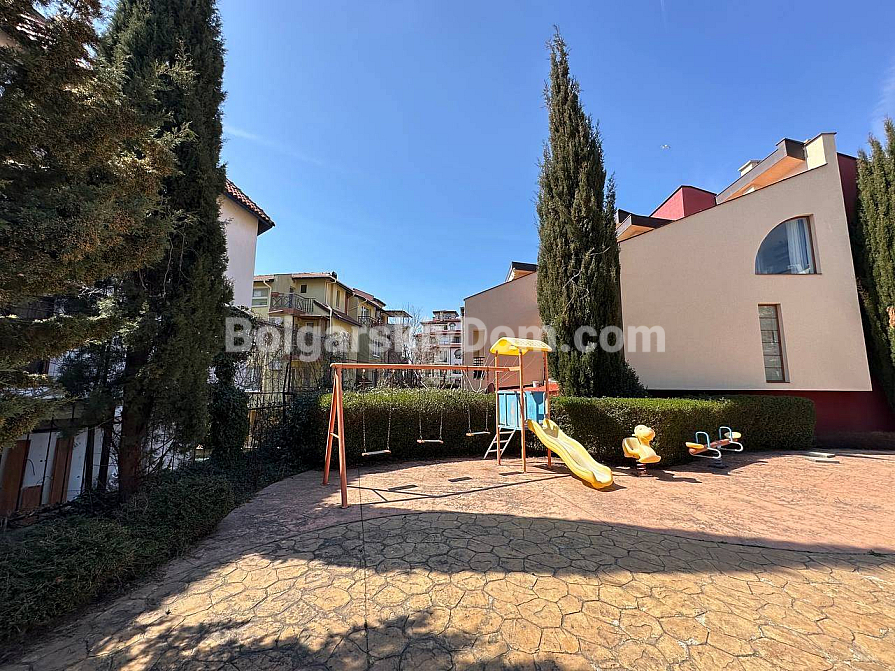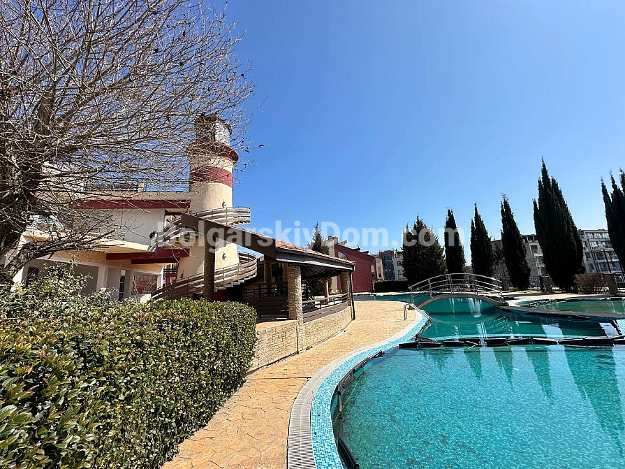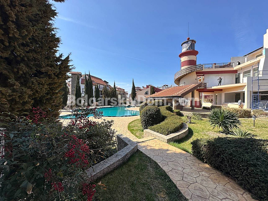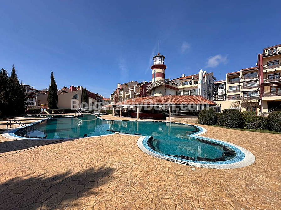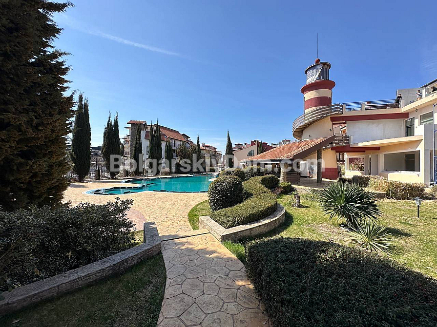 The location between the Yurta and Dinevi areas is considered one of the most prestigious on the coast. The property is situated in the Sea Lighthouse complex. The sandy beach and sea are just a 3-minute walk away. The gated territory resembles a botanical garden with landscaped greenery and an outdoor swimming pool. Nearby you will find shops, cafes, and a public transport stop. The annual maintenance fee is 10 euros per sq.m. We will provide detailed video materials and assist you in completing the deal on favorable terms. Contact us for a consultation today!