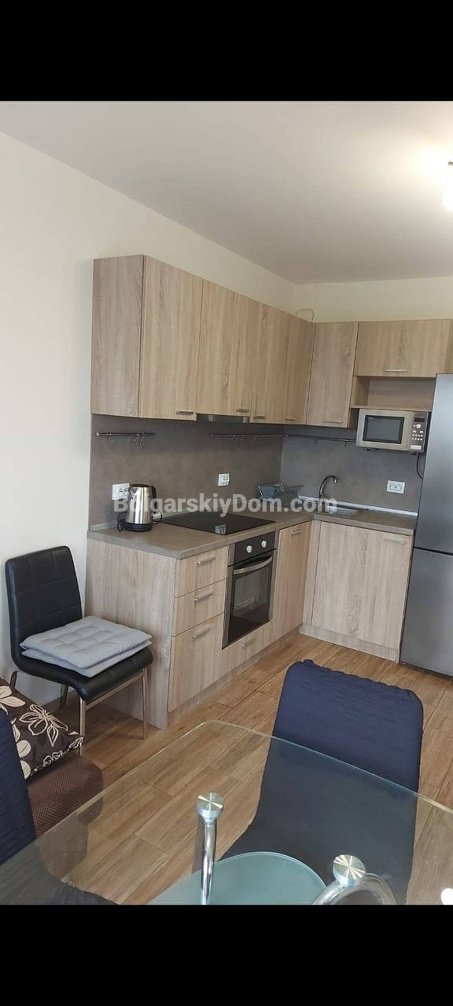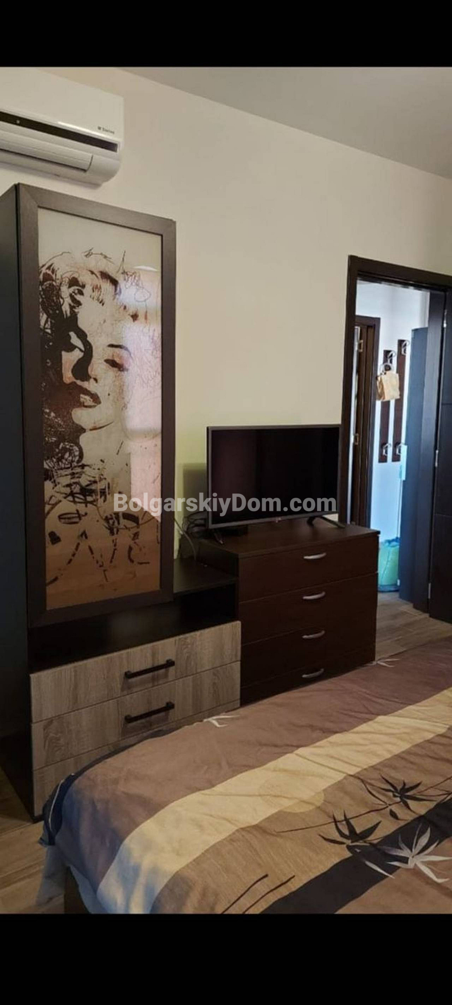 A new listing in the Bolgarskiy Dom portfolio — a spacious two-bedroom apartment in a Hollywood style! The 70 sq.m. property is located on the 6th floor of the famous Cascadas 8 complex. The sunny orientation provides natural warmth even in winter, allowing you to significantly save on heating. The apartment is fully ready for move-in: the kitchen is equipped with a large stove, oven, dishwasher, and a spacious refrigerator. Inside, there are 6 full sleeping places, including comfortable beds in the children’s room. The space is ergonomic and well organized: a floor-to-ceiling shoe cabinet in the hallway, as well as smart TV and high-speed internet installed in the rooms.