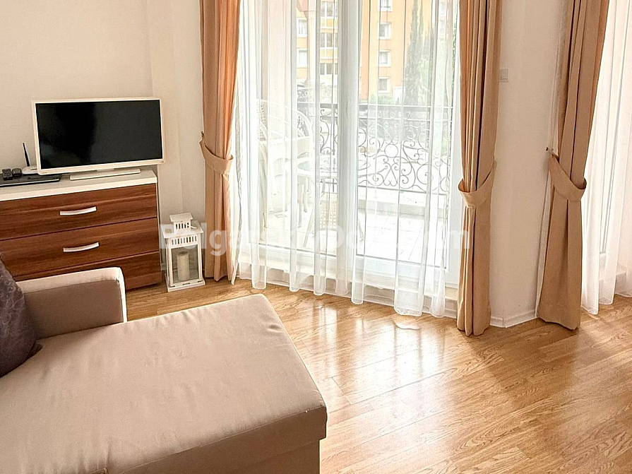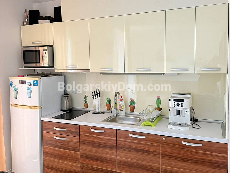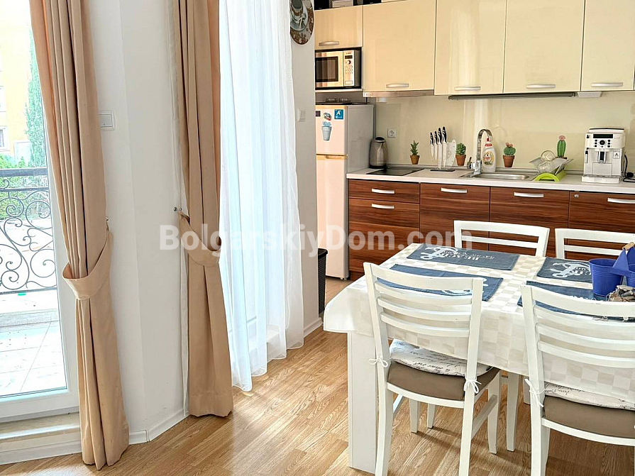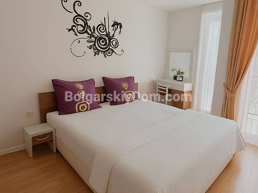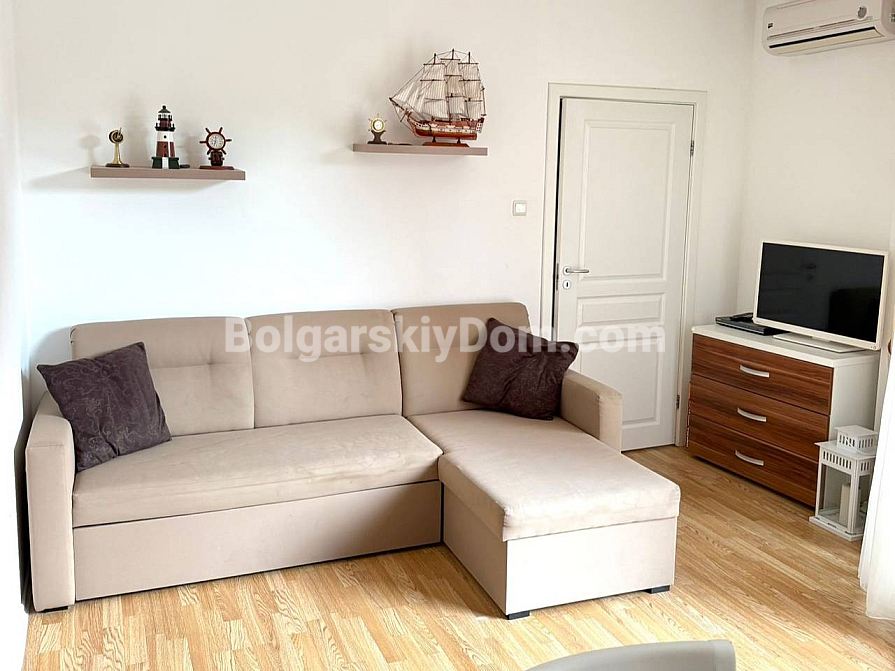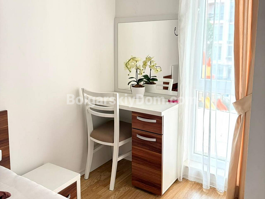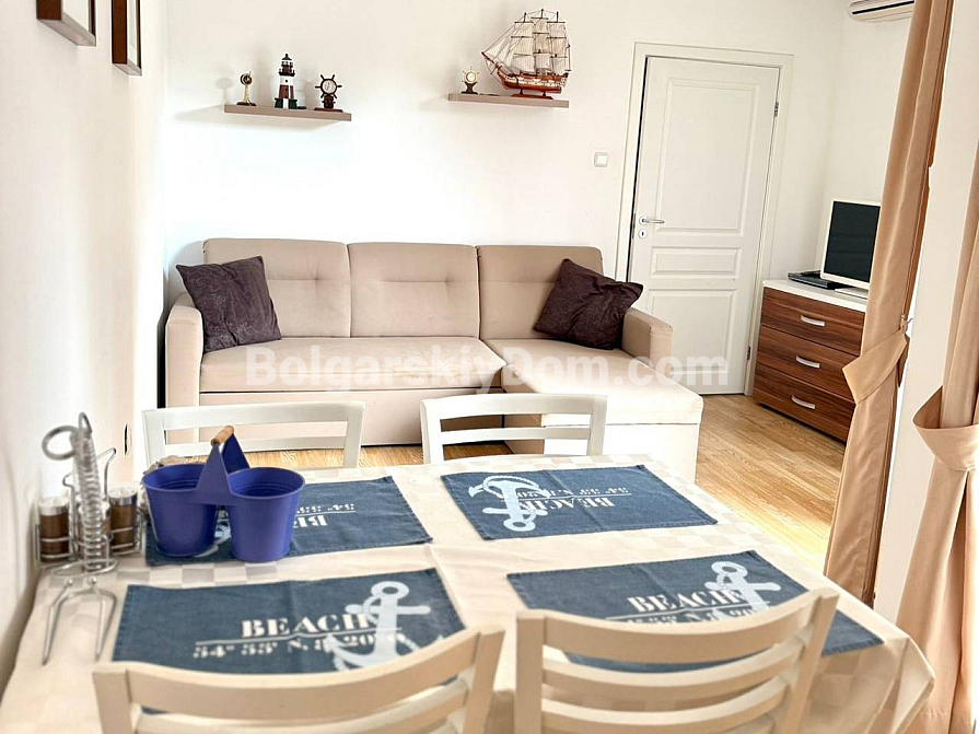 Property for sale! A one-bedroom apartment with an area of 56 sq.m. in the southern part of Sunny Beach is waiting for its new owners. Located on the 2nd floor of the Romance Marine complex, it offers easy access and welcomes you with plenty of natural light and a fully ready interior. The space is thoughtfully divided into a spacious living room with a kitchen area and a cozy bedroom. Quality furniture, modern appliances, and even textiles are included in the price. This eliminates the hassle of furnishing — you can move in and start enjoying your stay from day one.