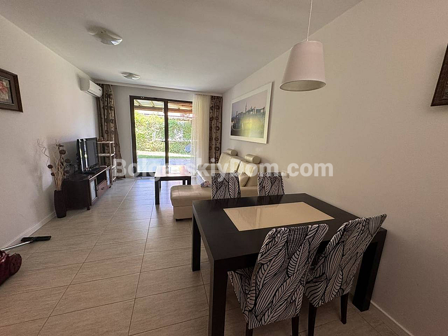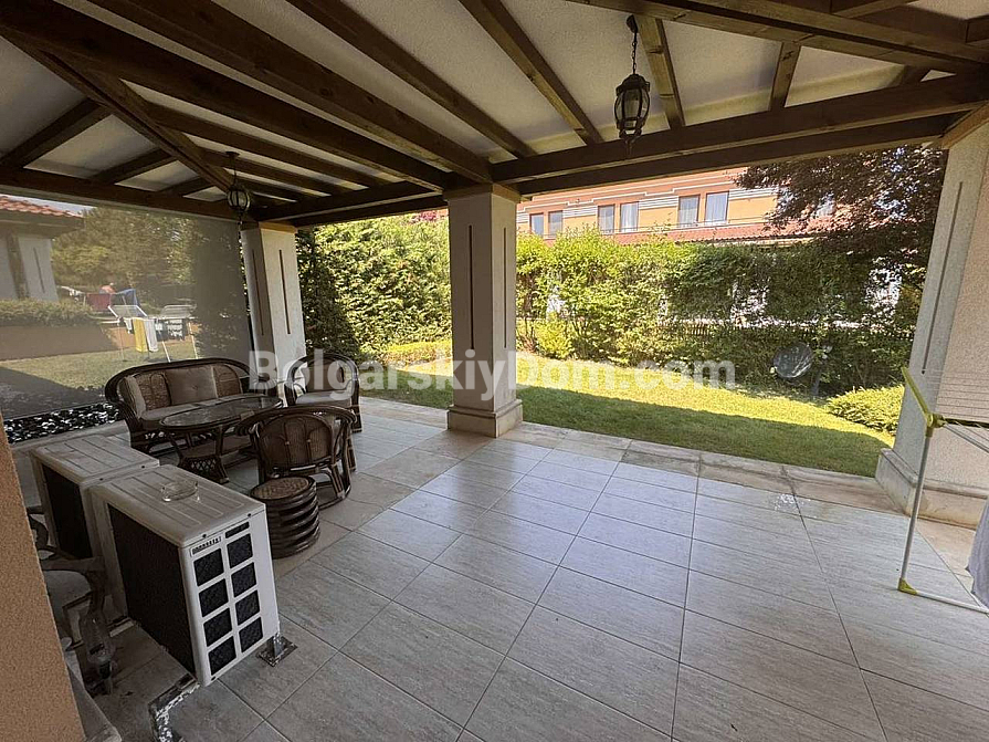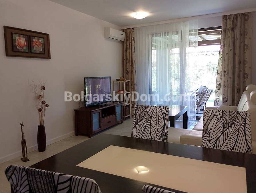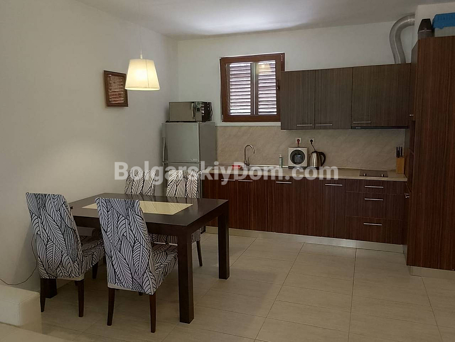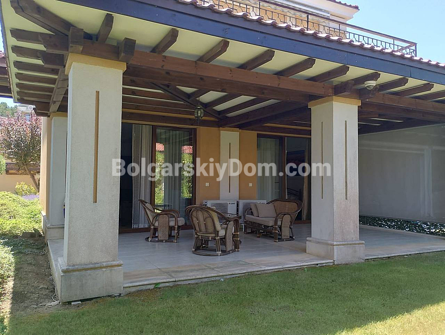 Check out the new offer from Bolgarskiy Dom! First coastline and the spaciousness of your own veranda in the prestigious Green Life Villas complex — a rare housing format in Sozopol! We offer one-bedroom apartment with an area of 140 sq.m., located on the ground floor of a villa. The layout includes a huge living room with a kitchen area, a separate bedroom, and a stylish bathroom. The main feature of the property is the direct access to a cozy terrace. It is a perfect place to spend time outdoors surrounded by greenery. The apartment is fully furnished and ready for occupancy. Built in 2011. This offer is an excellent solution for a quiet holiday or a profitable rental investment.