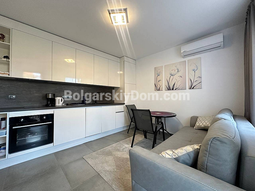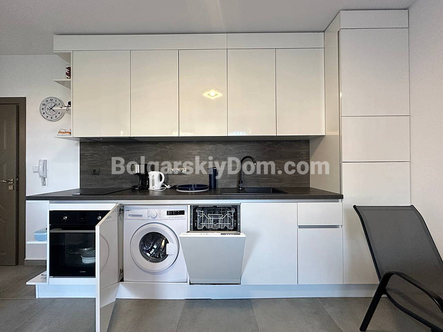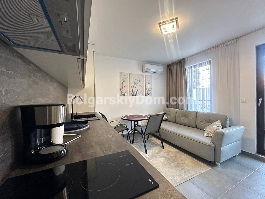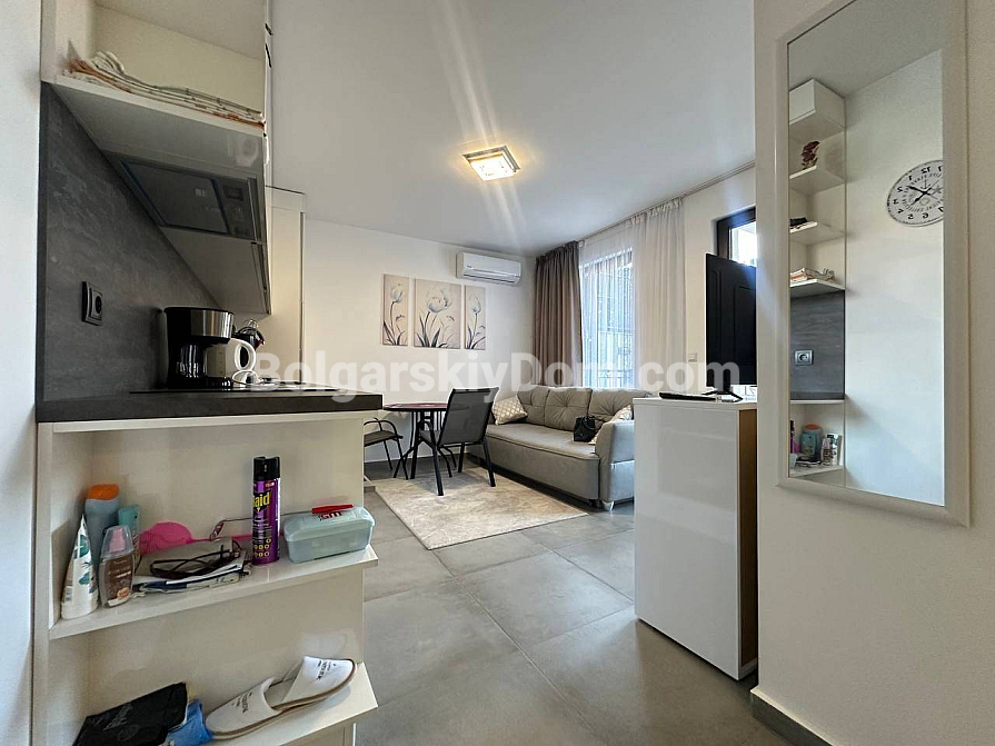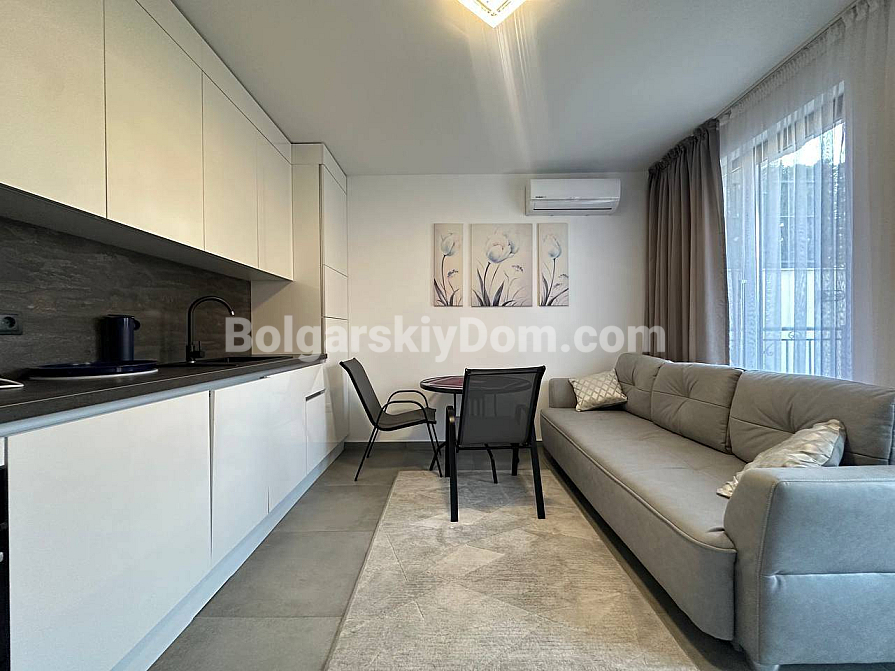 A new arrival for the current season! An apartment with a private entrance and its own terrace just 50 meters from the coast — the most sought-after property format in prestigious Sveti Vlas. This one-bedroom apartment of 45 square meters is located on the ground floor and comes fully equipped with high-quality furniture and appliances — featuring a stylish, modern, and practical interior in excellent condition. The internal layout includes a bright living room with a kitchen and dining area, a separate bedroom, and a bathroom. With no renovation needed, the property can be used immediately after the deal is closed.