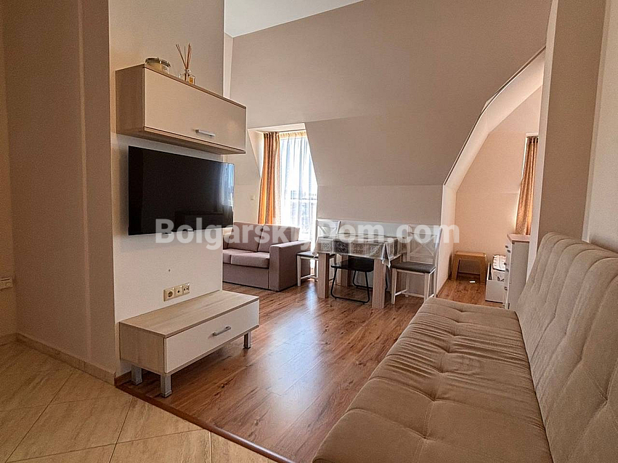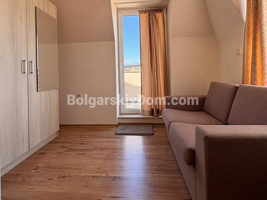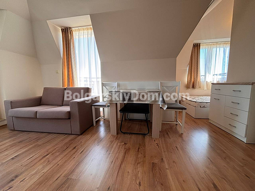 The complex operates year-round. You can visit the hammam, sauna, and fitness gym for free during designated hours. The territory features a heated swimming pool with massage loungers and a cozy lobby bar. The location is excellent: a modern water park is nearby, and the walk to the central beach takes about 15 minutes. The building has Act 16 and all necessary documents. Bolgarskiy Dom specialists will prepare the contract and organize a viewing. You deserve a quality holiday in Bulgaria without extra hassle — call us!