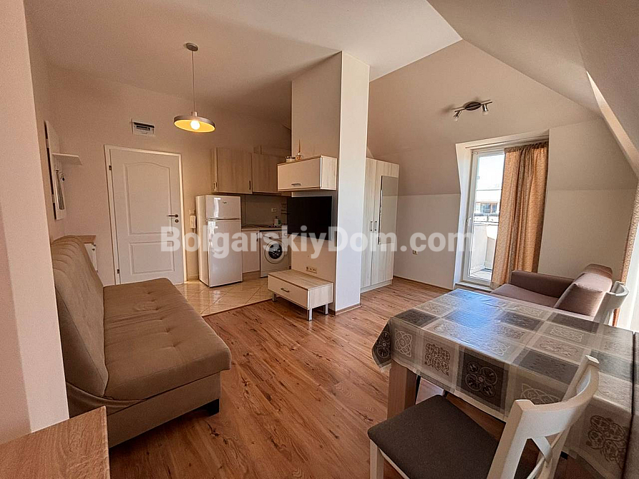 Meet the latest listing from Bolgarskiy Dom — the leader in the number of high-liquidity properties in our catalog! With its own panoramic terrace and the spaciousness of a full-sized apartment, you get a ready-to-move-in studio in the Dawn Park Deluxe complex. The area of nearly 55 square meters allows for a free furniture layout while maintaining a sense of comfort. The fifth floor offers a pleasant view of the surroundings. You enter a fully equipped home: furniture and appliances are already in place. It is perfect for family vacations or permanent residency, enjoying the peace of the northern part of Sunny Beach. Plus, it offers high rental yield.