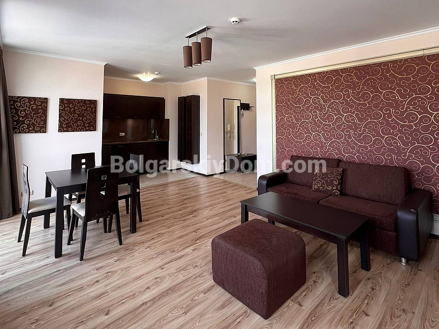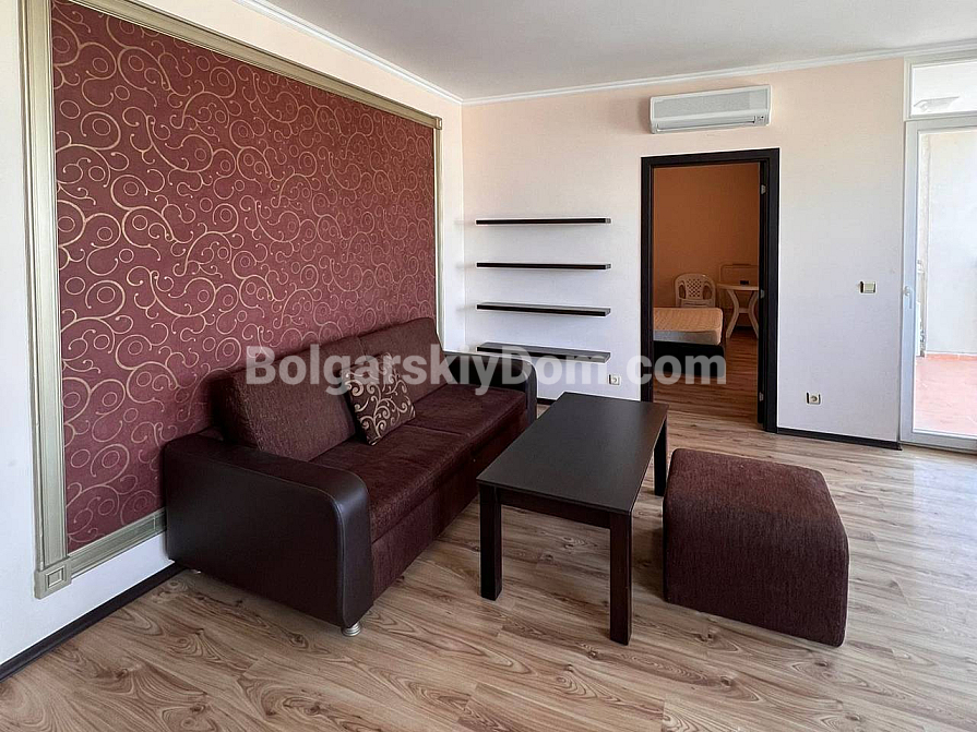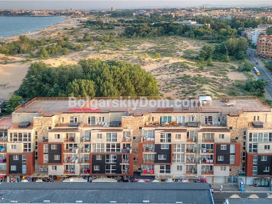 Dune Residence is a complex with direct beach access, private parking, a garden area, and a well-maintained territory. The location is one of the best in the resort: just steps away from restaurants serving Bulgarian and European cuisine, bars, shops, pharmacies, and transport stops. Action Aquapark is a 10-minute drive away, and Burgas Airport is 27 km away. The apartment is equally suitable for holidays, year-round living, and rental — this format by the sea is always in demand. Important: the maintenance fee is only 7 euros, which is one of the lowest rates in the resort. Call us; we are conducting viewings!